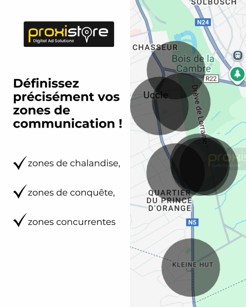 📍 2° Définissez précisément vos zones de communication : de chalandise, de conquête, concurrentes… Le bon ciblage géographique fait toute la différence en période de soldes.