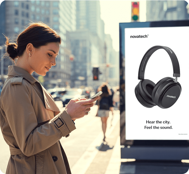 Prolongez la portée de vos campagnes digitales dans la rue, les transports, ou les lieux de passage grâce à notre partenaire, spécialiste du DOOH localisé.